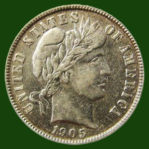 With only 800,000 Barber dimes being struck at the San Francisco mint, this 1904 dime is likely get you up to $1,800 at auction. For the next five years in this series, the lease amount minted is over a million coins for each mint. This gets a little more rare when you consider Philadelphia minted less than 15,000,000 dimes.