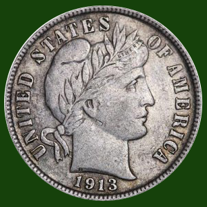 In 1913, the US Mint only produced Barber dimes at two locations, Philadelphia and San Francisco. Even with only two locations making these dimes, San Francisco only minted 510,000. This creates a bottleneck that drives the price up for investors who seek to collect all Barber dimes.