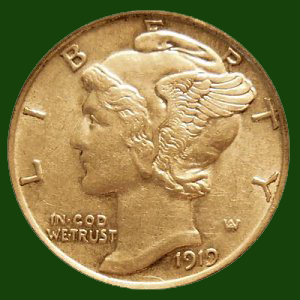 The two mintmarked 1919 Mercury Dimes are worth $450 in MS-63 condition. If you’re willing to step down to an MS-60 dime, you’re looking at less than half that price. With so many coins being minted, it offers a good chance to find one that adds to your collection. You can find 1919 Mercury Dimes in G-4 condition for about $3. That’s an awesome price since the silver content is currently at $1.82 (Silver spot price is hovering around $25 as I write this).
