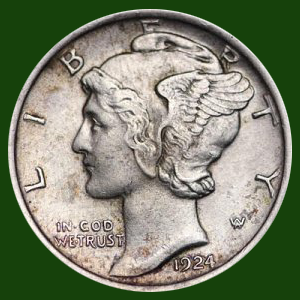 For a coin that has an extra mint producing it and almost half the volume of the previous year, it’s interesting that the 1924 Mercury Dime is worth slightly more. You can pick up a certified MS-63 coin for $100 to $525. The Denver mintmark and the San Francisco mintmark are the two most valuable mintmarks for this year dime.