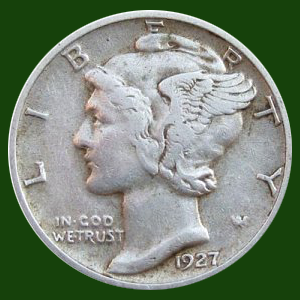 The 1928 Mercury Dime is the end of a series of more valuable dimes. From 1928 onward the value for dimes drops unless it has an error. A Denver minted 1928 dime in uncirculated (MS-63) condition, will likely auction off for about $360. A Philadelphia or San Francisco minted coin in the same condition will likely go for $35-55.