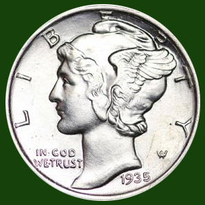 Following The Great Depression, the US started producing dimes after a two year hiatus. The price dimes can command seem to drop off in general. The 1934-D Mercury Dime lost some demand against the dimes that came prior. A high grade (MS-65) 1934-D uncirculated dime will only cost you $85 or so. An EF-40 graded dime will only cost you $8.