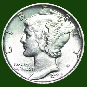 The 1939-S Mercury Dime breaks the trend of the previous few years by increasing in value by about 10% over the 1938-D Mercury Dime. This dime is very similar in value to most of the dimes from 1936-41.