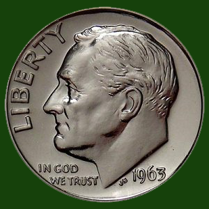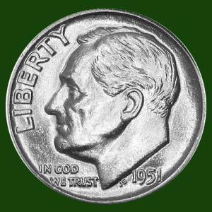 The 1950-S Roosevelt Dime is the highest value US dime of this year. After 1950, the value for US dimes drops unless there’s an error. The 1950 dime with the San Francisco mintmark is valued at about $38 for an MS-63 certified coin.