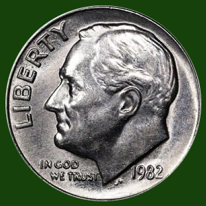 In 1980, the US Mint started adding the “P” to the coins minted in Philadelphia. For some reason, some of the 1982-P dimes didn’t get the “P” stamped on them. These coins in MS-65 condition are fetching upwards of $65 to $200. The apparent difference in the price is for coins with strong strikes versus a weak strike. This is an error you could possibly find in your hunt for coins!
